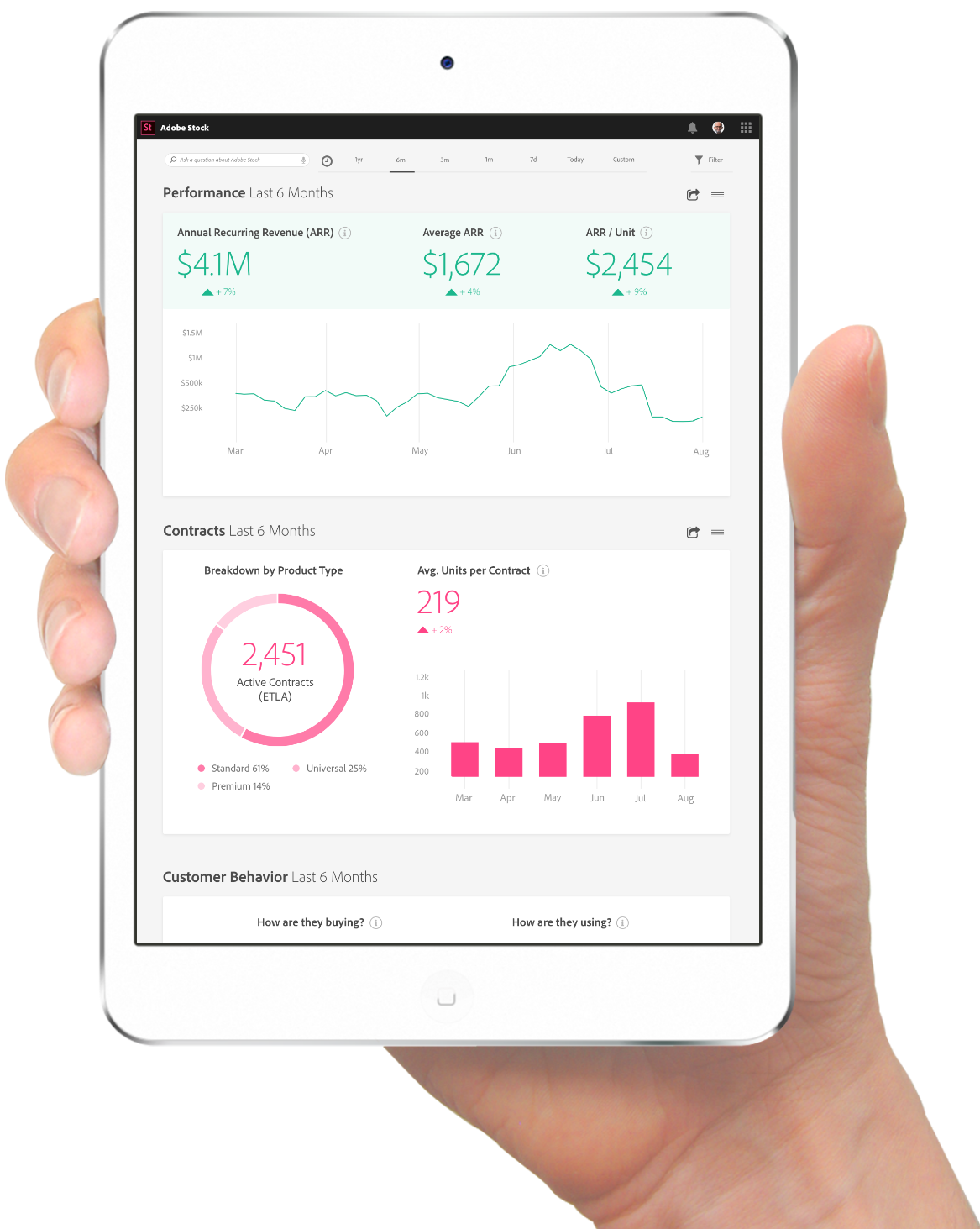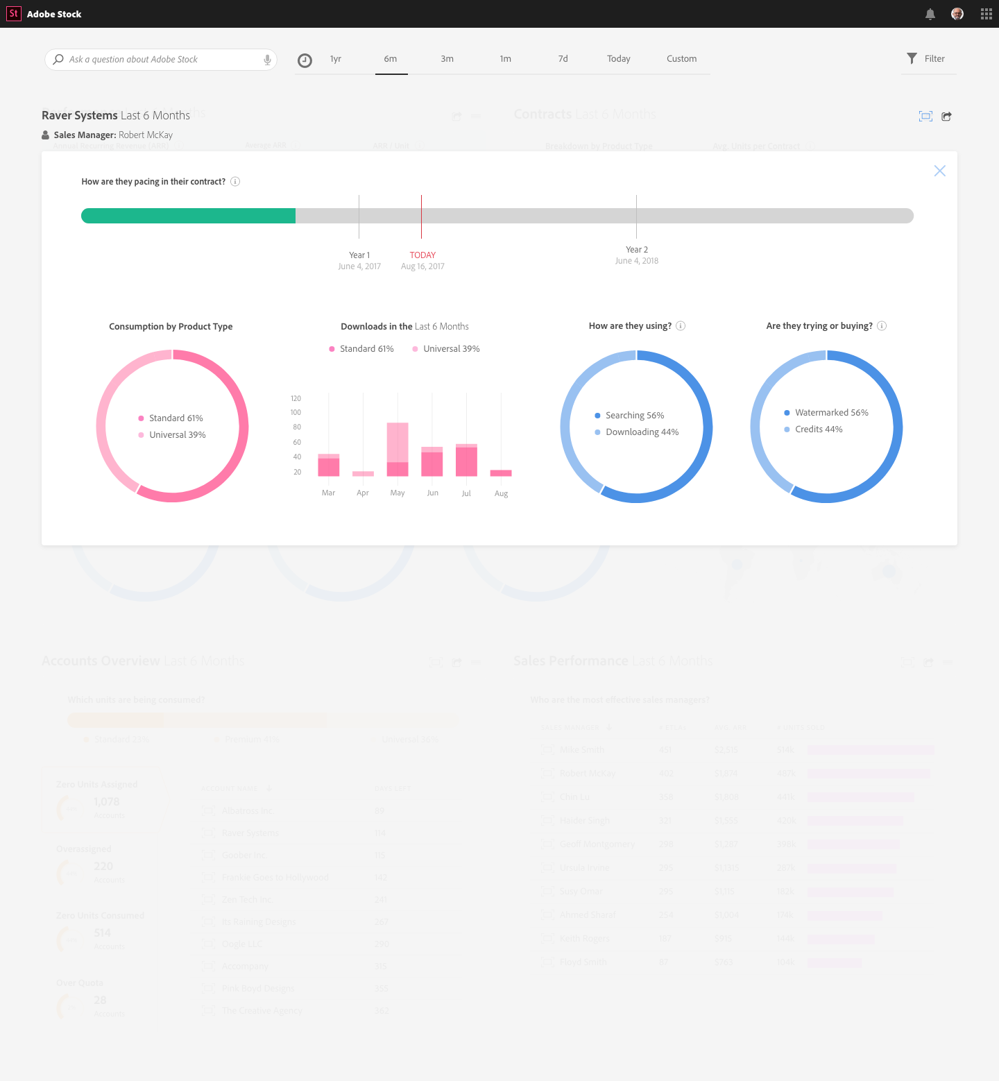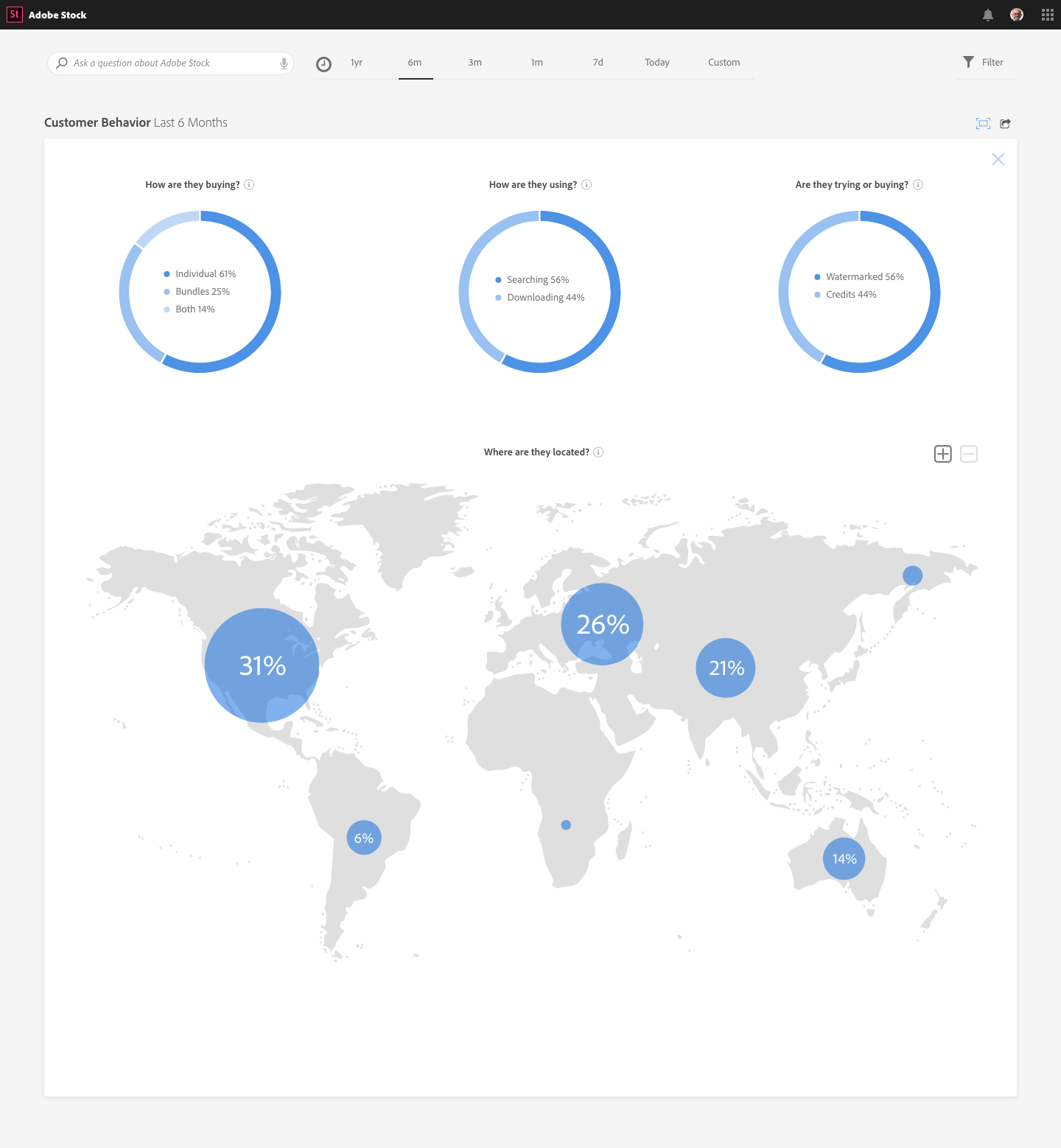 I then focussed on customer behavior by showing distribution of how they’re buying, using and downloading stock credits/images/videos.