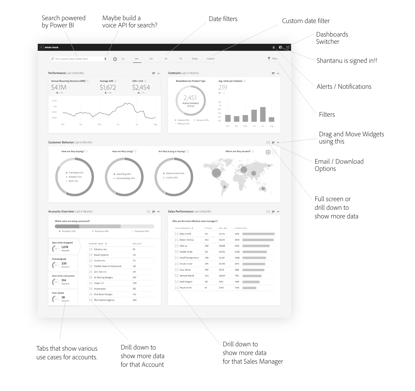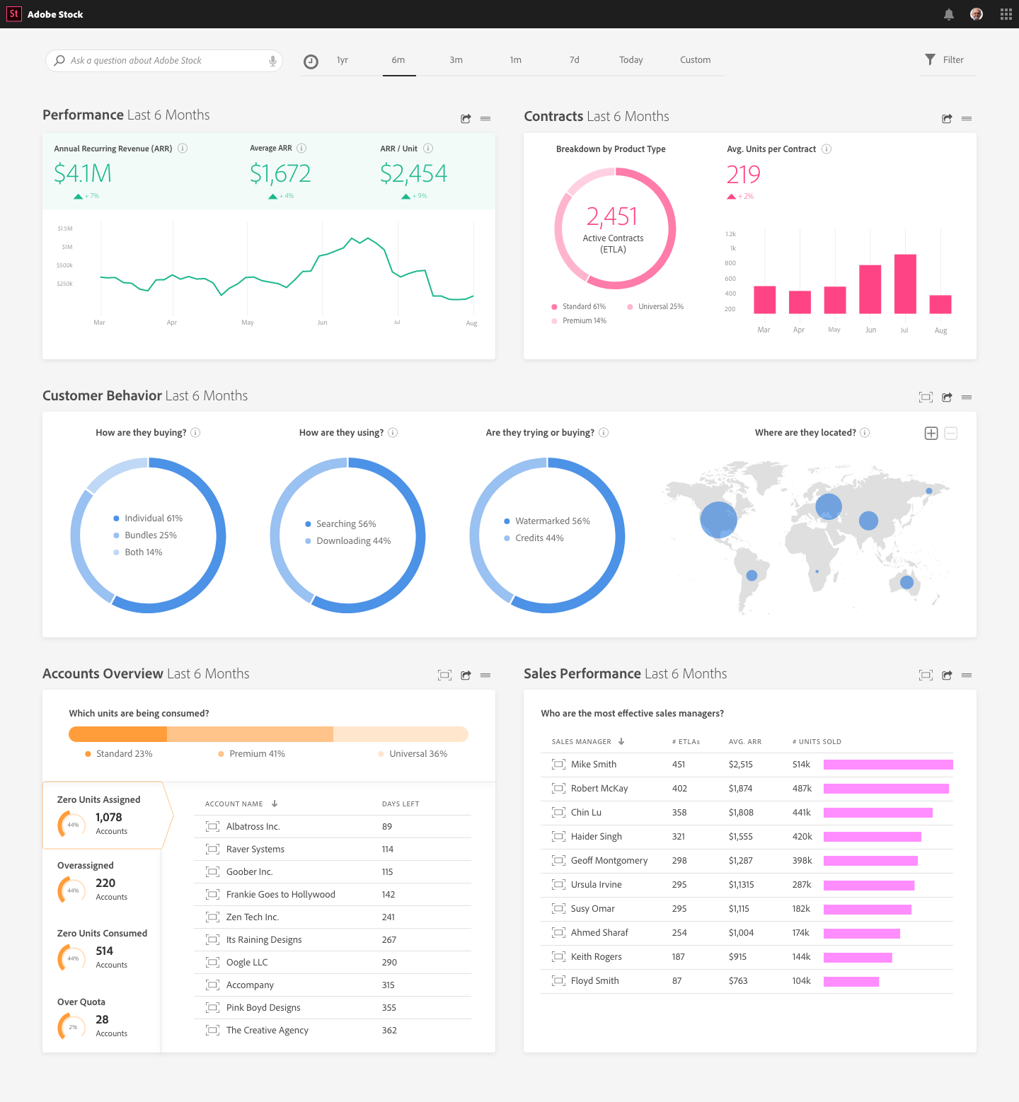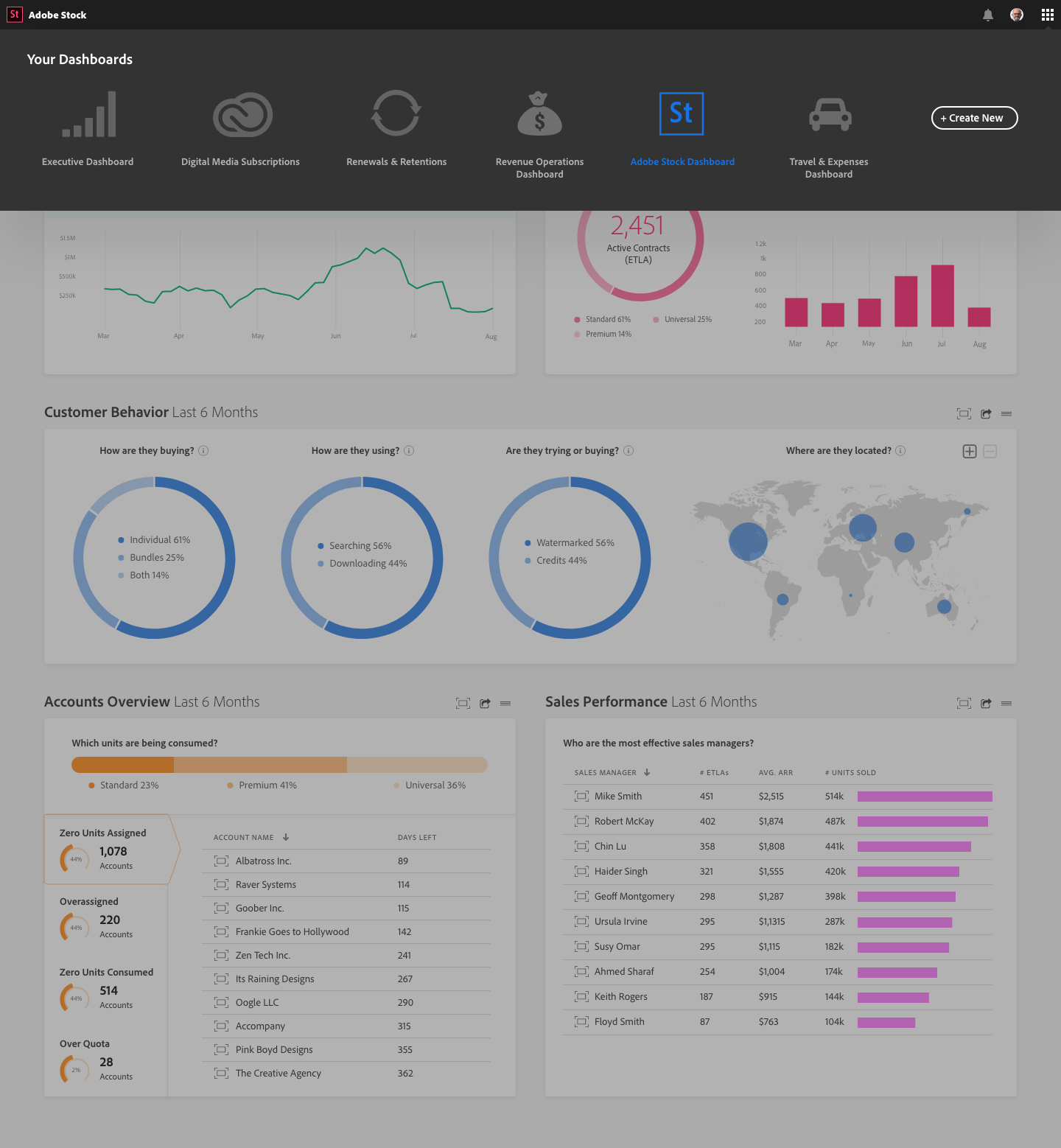 I prioritized ARR and ETLA Contracts views for this dashboard for a quick look at the trends by showing a time series and a bar chart