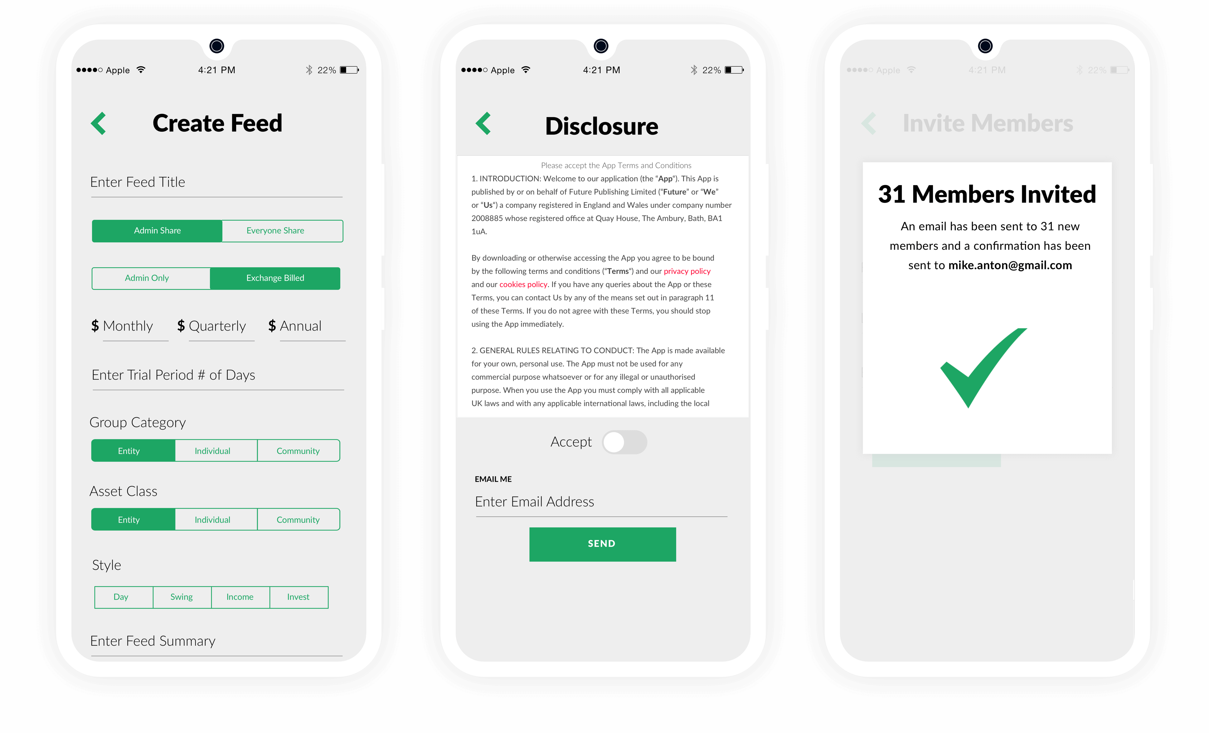 Trade Exchange is a marketplace for subscription-based advice centered around Intelligent Tracking. We provide individual investors access to a directory of verified trading and investment strategies that originate from gurus, newsletters, quants, individuals, and former asset managers. Once a user subscribes to a particular strategy they receive actionable alerts through our app that can easily be acted upon with a couple of clicks. With Intelligent Tracking, users always know what each source provided them, what they did with that information, and what happened on the trades they didn't take. The platform levels the playing field for both strategy publishers and self-directed investors.